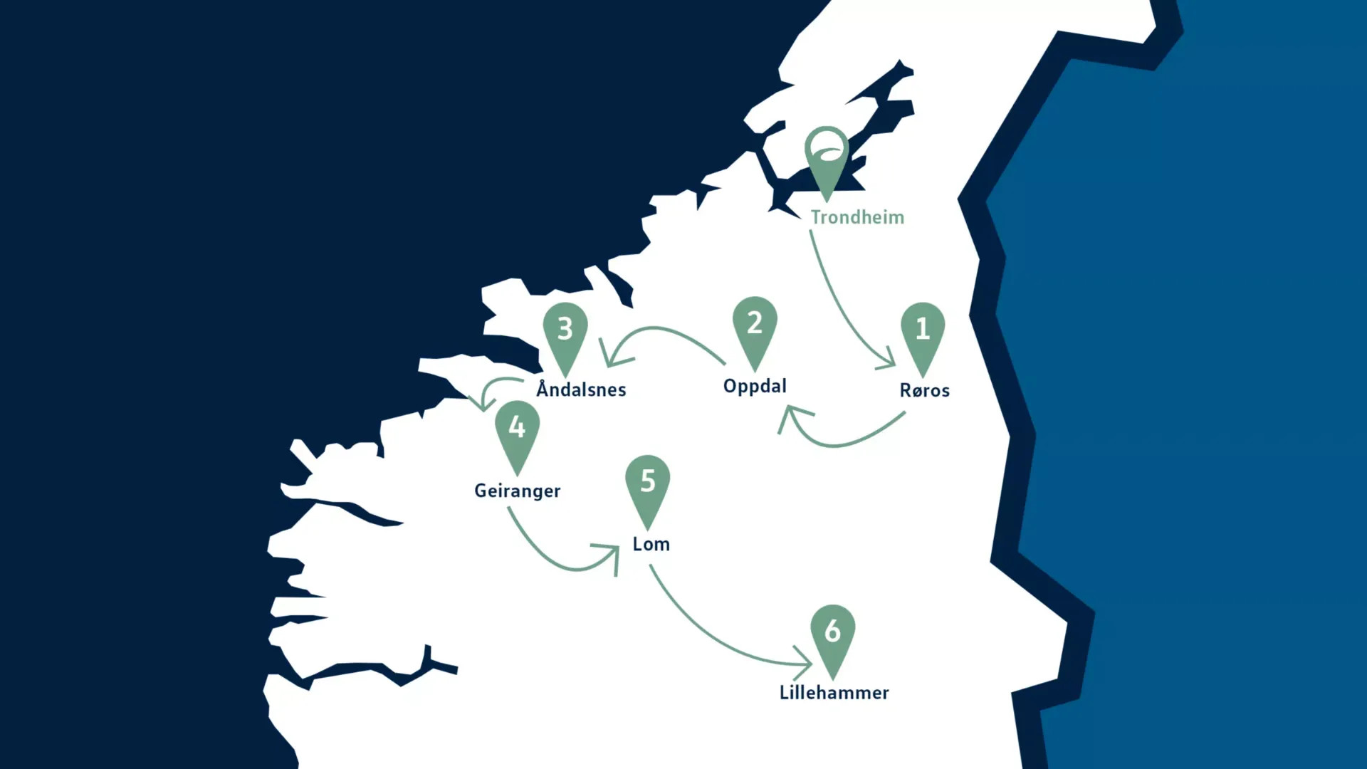 Gotowi na bardziej surową, ale równie zachwycającą przygodę? Trzecia propozycja trasy to wyprawa przez środkową Norwegię. Ta droga to idealne połączenie bogatej historii i najbardziej spektakularnych górskich pejzaży, w tym słynnej Drogi Trolli. Zaczynamy!