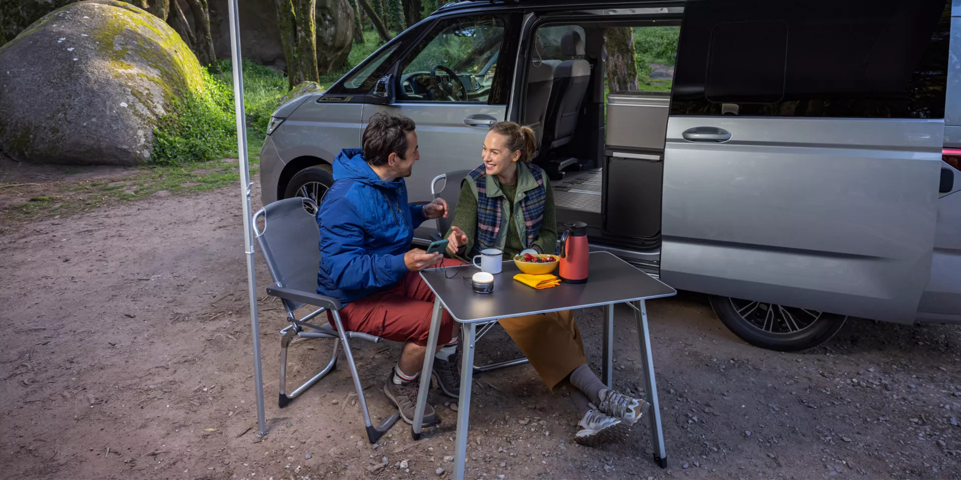 Kuchnia w Kamperze: W naszych California Campers macie w pełni wyposażoną kuchnię. Jeśli jednak chcecie poczuć jeszcze więcej atmosfery kempingu, pomyślcie też o kuchence gazowej lub małym grillu kempingowym do użytku zewnętrznego (pamiętajcie o zakazach rozpalania ognia!).